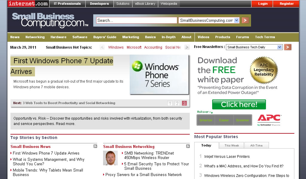 SmallBusinessComputing.com redesignedwith new color theme and cleaner, more open layout.